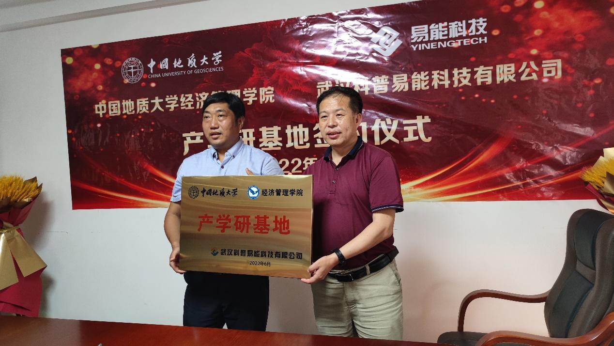 会上,杨昌锐书记与陈学军董事长签订了校企实习协议,并向武汉科普易能科技有限公司授牌为学院产学研基地。